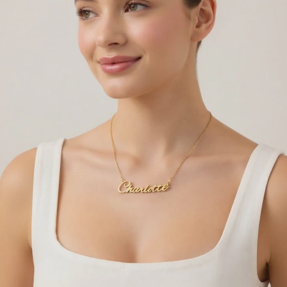 Charlotte Name Necklace - Signature Names Gold or Silver Tone Nameplate Necklace
