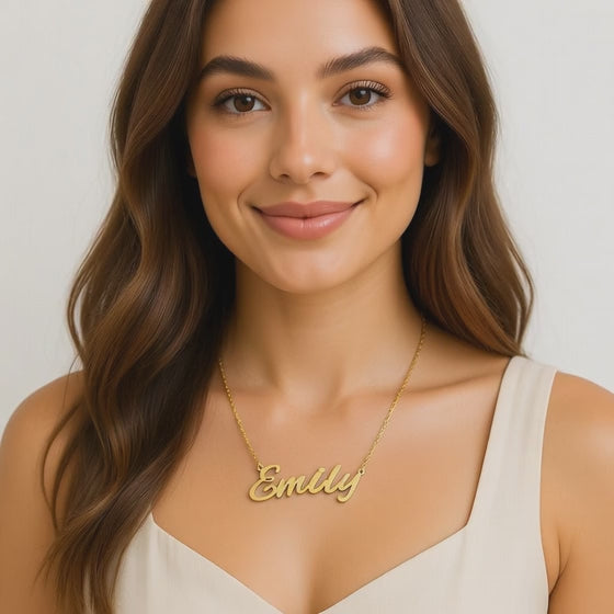 Emily Name Necklace - Signature Names Gold or Silver Tone Nameplate Necklace